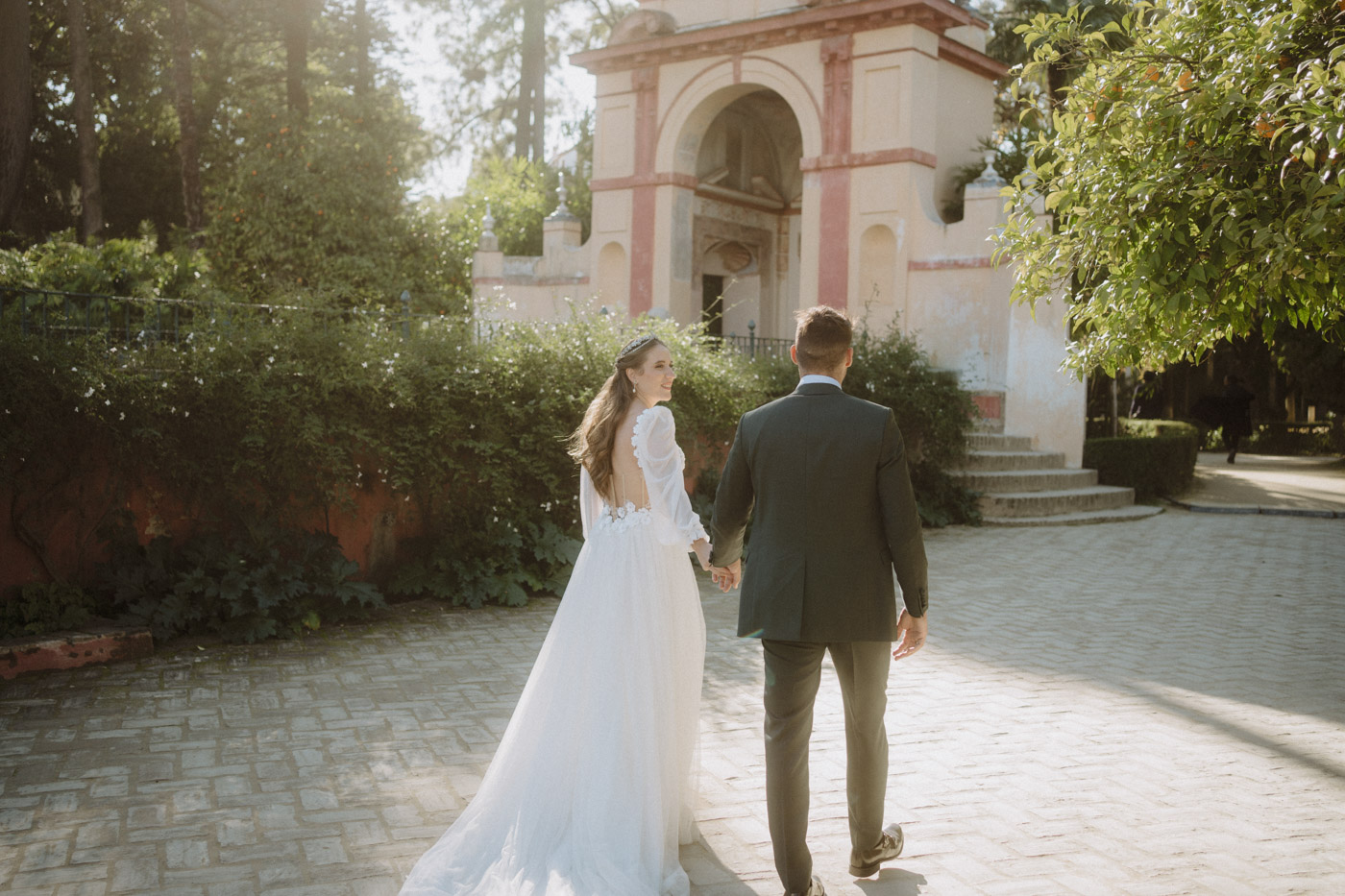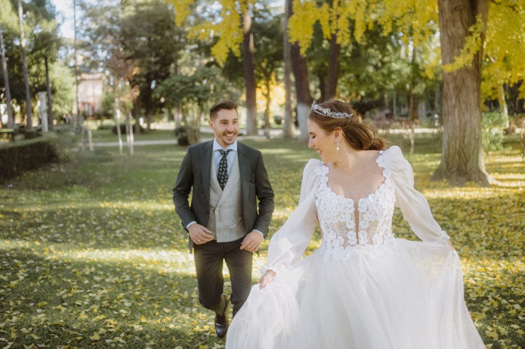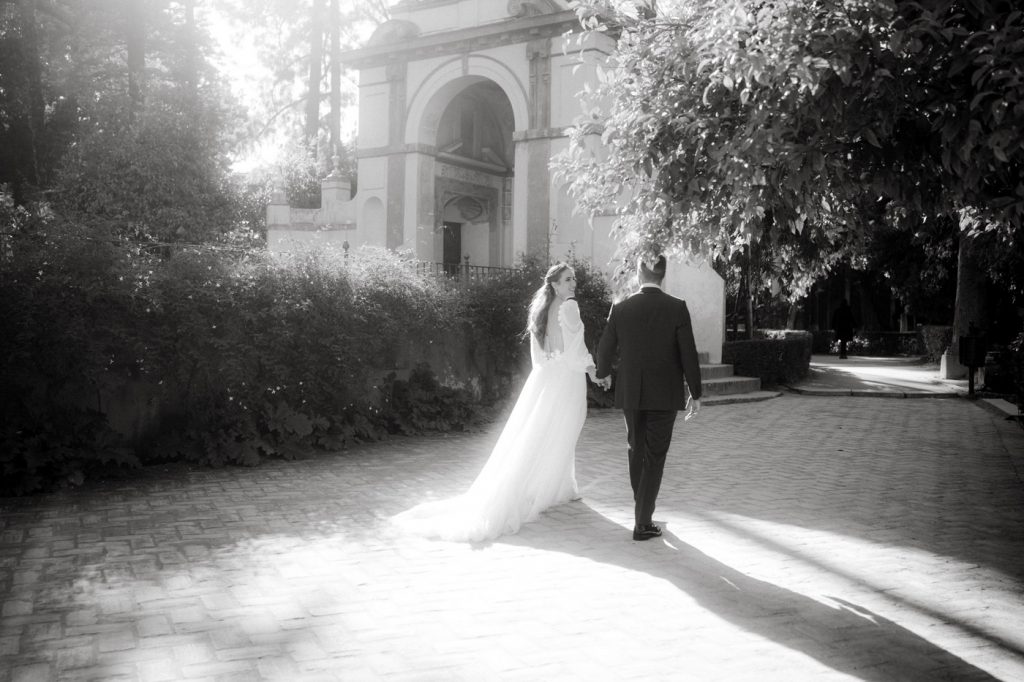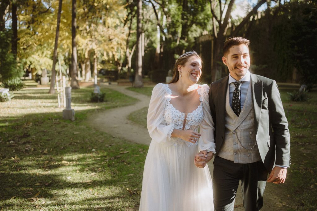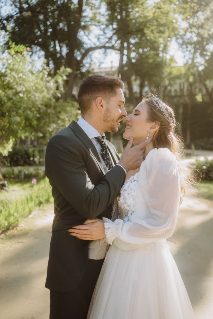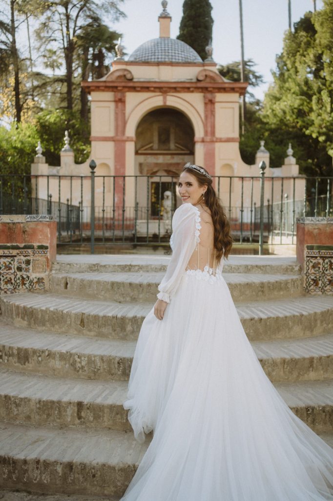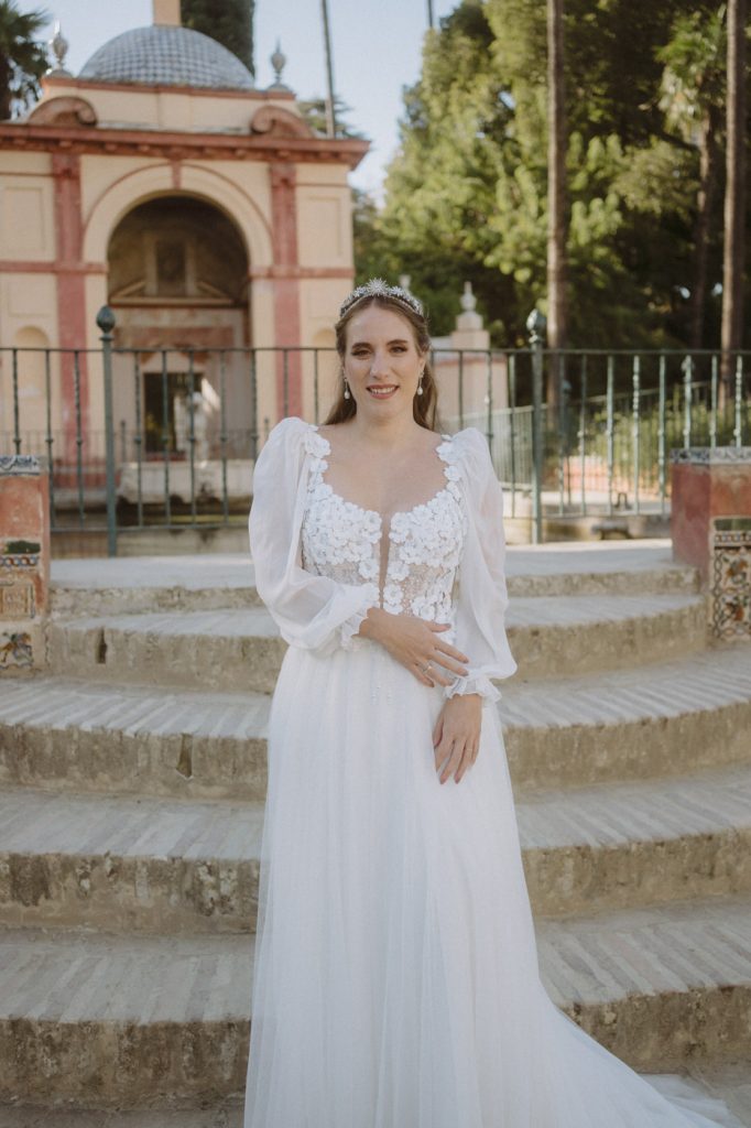 Mucha gente duda en si hacer postboda o no, la consideran prescindible, ya que el día de la boda ya tienen muchas fotos vestidos de novios y es verdad, pero no es lo mismo para nada. Pensad en el dineral que os gastáis en ese vestido y ese traje, para usarlos solo un día en la vida… menos incluso, unas horas. Además en la boda muchas veces tenemos muy poquito tiempo para fotos. Es normal, no queréis perderos mucho tiempo del cocktail porque quereis comer y estar con vuestros seres queridos, es comprensible. Además muchas veces la luz es la que toque y el entorno a veces puede ser demasiado limitado. Las postbodas merecen la pena porque os permite por un lado, volver a tener la oportunidad de lucir el vestido y el traje, (antes de guardarlo para la posteridad) y haceros fotos con total tranquilidad, en un sitio bonito de vuestra elección, a una hora en la que la luz va a ser perfecta para que salgan espectaculares. Es un recuerdo que sin duda merece la pena tener y salen fotones que os encantará tener. Si me preguntáis, la postboda es sin duda un rotundo SÍ. Y así lo demuestran las fotos de a continuación. Y encima si elegís el Alcazar de Sevilla como Alba y Javi, el éxito está asegurado, ya que es un sitio precioso y lleno de rincones fotogénicos.