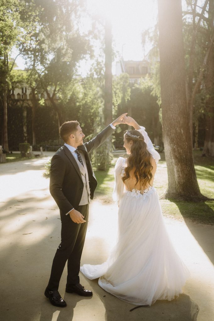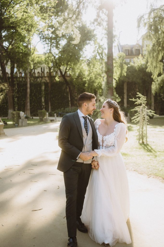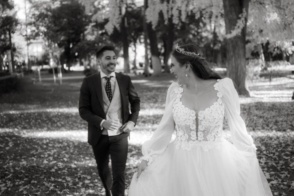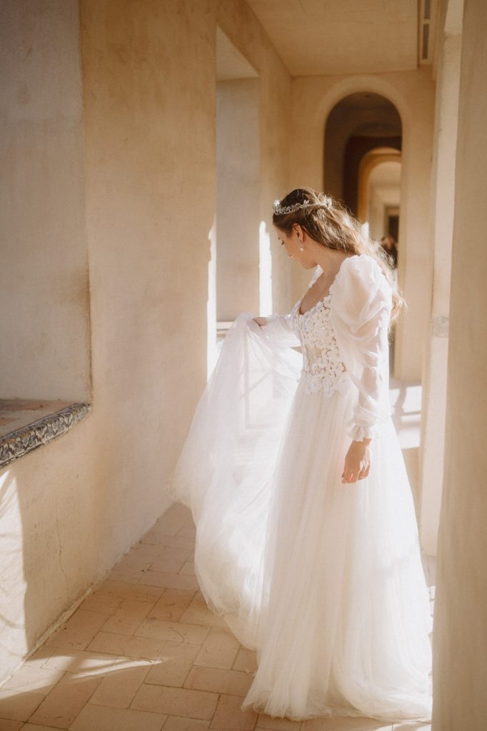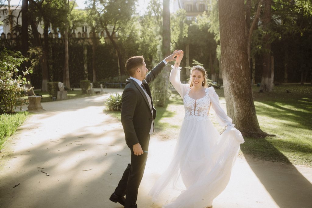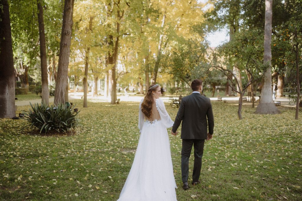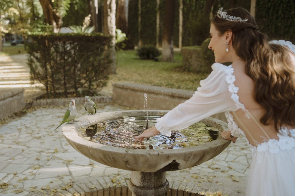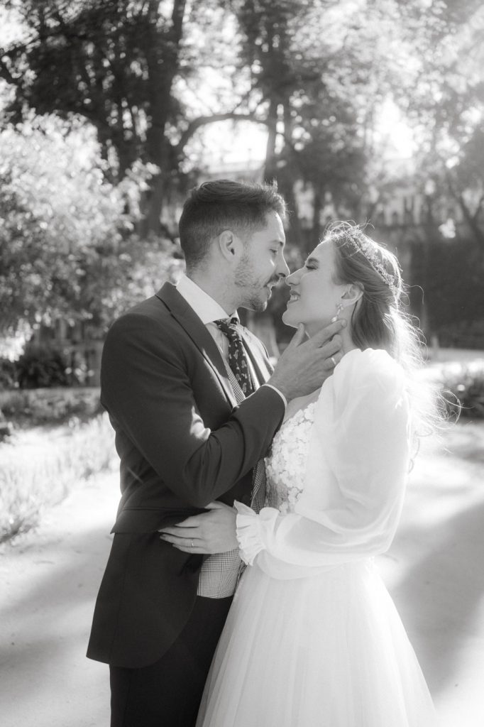 Mucha gente duda en si hacer postboda o no, la consideran prescindible, ya que el día de la boda ya tienen muchas fotos vestidos de novios y es verdad, pero no es lo mismo para nada. Pensad en el dineral que os gastáis en ese vestido y ese traje, para usarlos solo un día en la vida… menos incluso, unas horas. Además en la boda muchas veces tenemos muy poquito tiempo para fotos. Es normal, no queréis perderos mucho tiempo del cocktail porque quereis comer y estar con vuestros seres queridos, es comprensible. Además muchas veces la luz es la que toque y el entorno a veces puede ser demasiado limitado. Las postbodas merecen la pena porque os permite por un lado, volver a tener la oportunidad de lucir el vestido y el traje, (antes de guardarlo para la posteridad) y haceros fotos con total tranquilidad, en un sitio bonito de vuestra elección, a una hora en la que la luz va a ser perfecta para que salgan espectaculares. Es un recuerdo que sin duda merece la pena tener y salen fotones que os encantará tener. Si me preguntáis, la postboda es sin duda un rotundo SÍ. Y así lo demuestran las fotos de a continuación. Y encima si elegís el Alcazar de Sevilla como Alba y Javi, el éxito está asegurado, ya que es un sitio precioso y lleno de rincones fotogénicos.