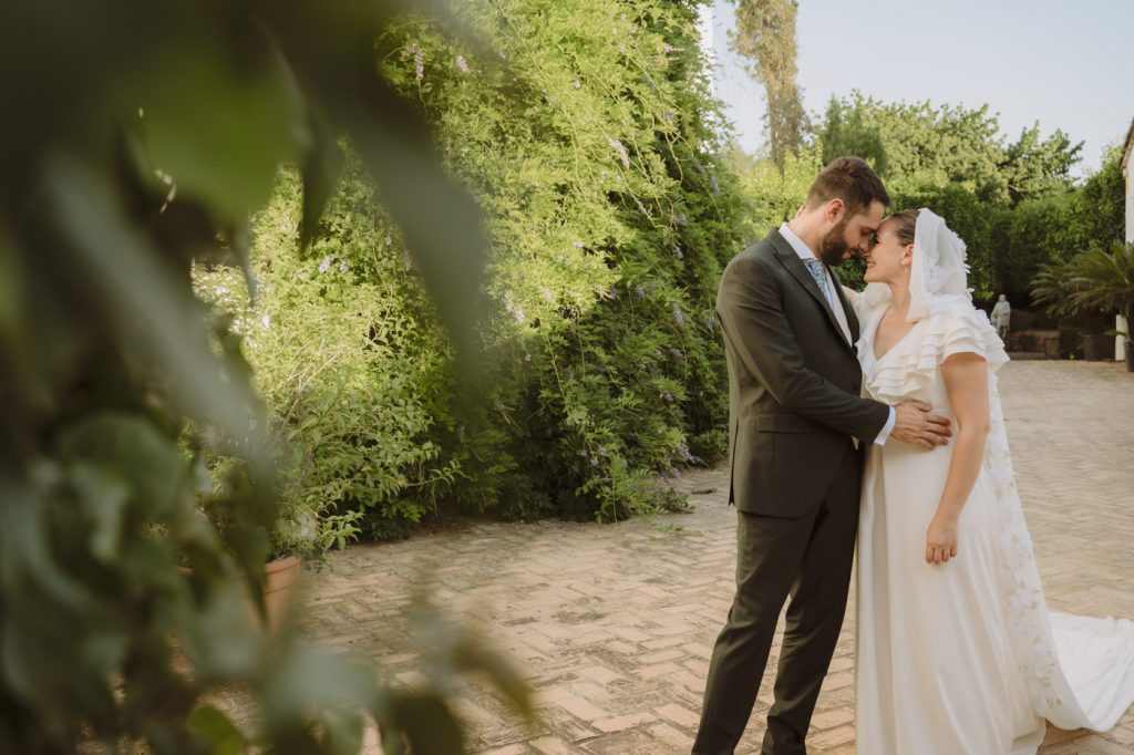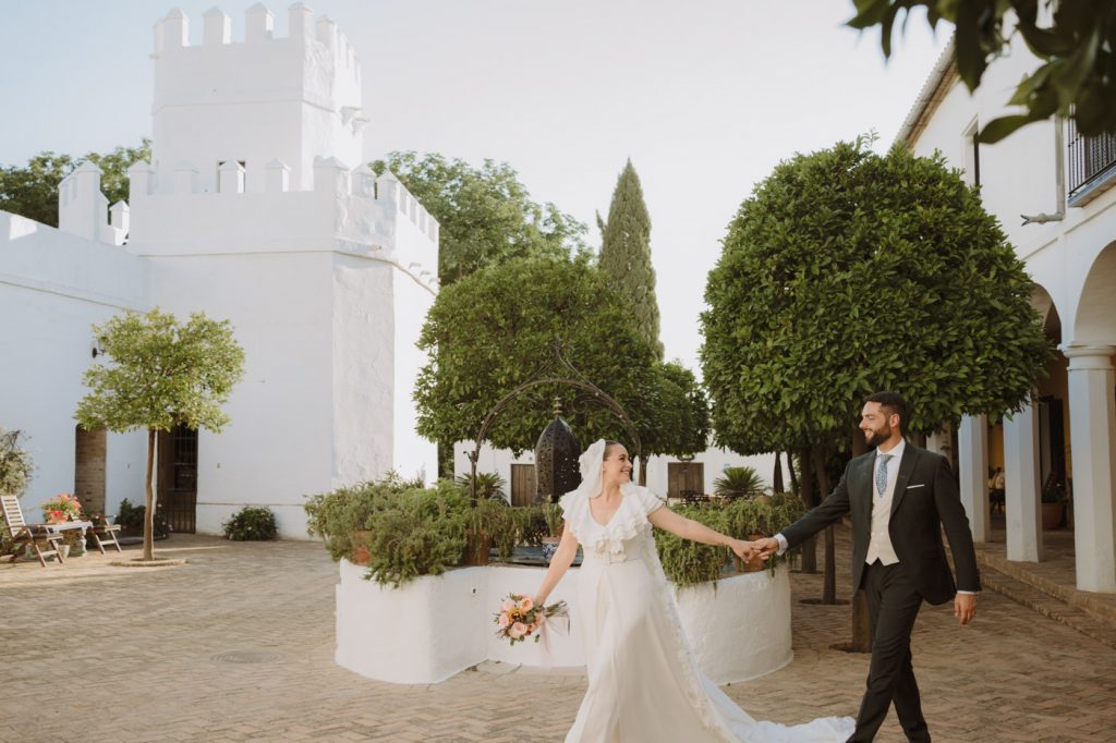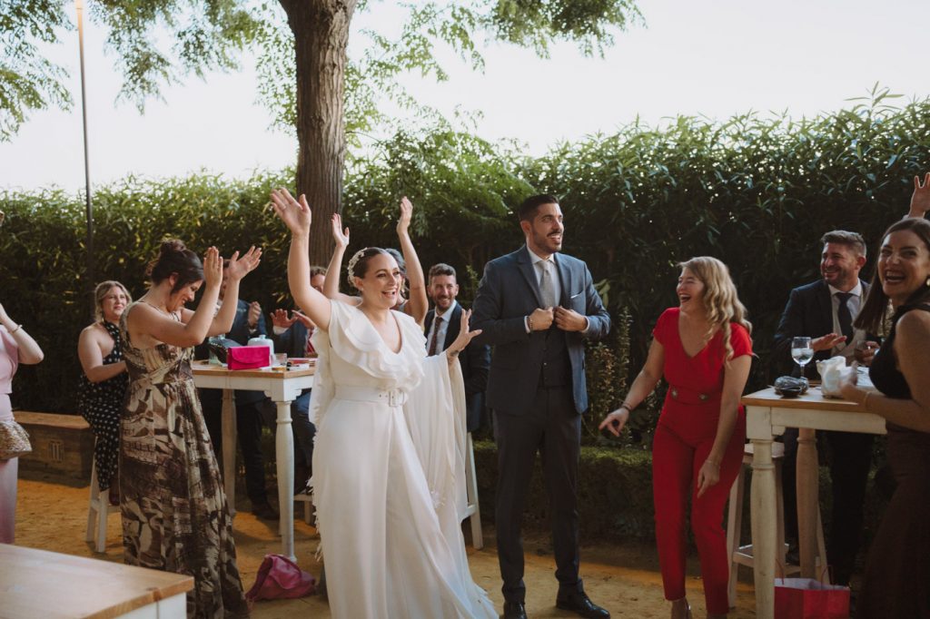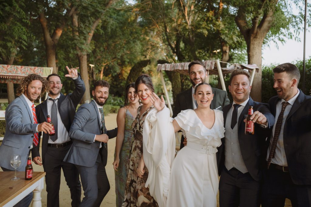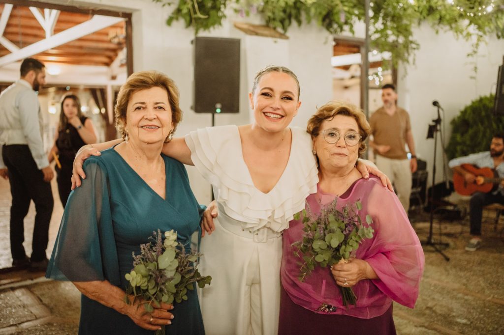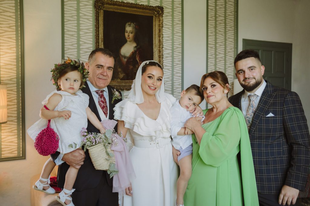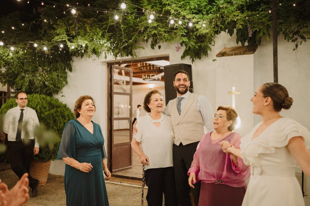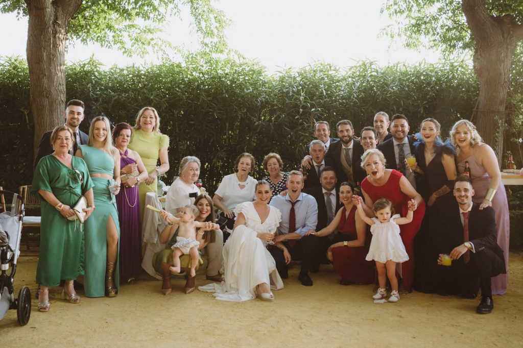 Dicen que de una boda, sale otra boda, y desde luego con este grupito se cumple ese dicho. Triana me contactó a raíz de ver las fotos de su prima uno o dos años antes, pero a través de Triana, también salieron las bodas de un par de amigas más de su grupo, y de ellas de miembros de su familia… En fin, una muy buena cadena de recomendación a la antigua usanza sin duda, y sinceramente no puedo sentirme más agradecida de que su círculo haya confiando en Andromeda Stories y sigan haciéndolo hasta día de hoy. Además que son a cada cual más encantadores y buena gente. Parejas con las que da gusto tratar, agradecidas y que te lo ponen muy fácil. Triana y Fran son una de esas parejas y tuvimos super buen feeling desde el principio. A su preboda se trajeron a sus dos pequeños y disfrutamos muchísimo haciendo fotos en familia, y en la boda ya todo iba rodado y me hicieron sentir como en casa. Además eligieron un sitio maravilloso para casarse, el precioso Cortijo Torre de la Reina, donde se casaron bajo un árbol, frente a sus seres queridos, y la zona de la cena la decoraron super bonita con un techo de bombillas amarillas que creaban un entorno de ensueño para una noche de verano para el recuerdo.