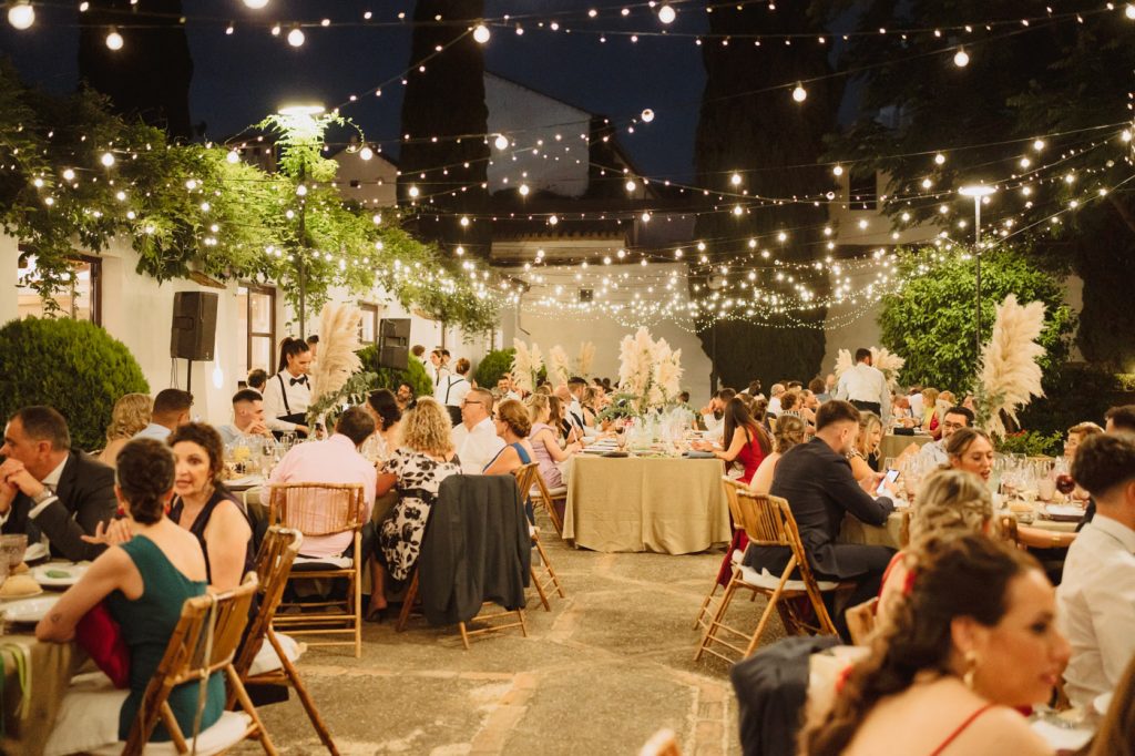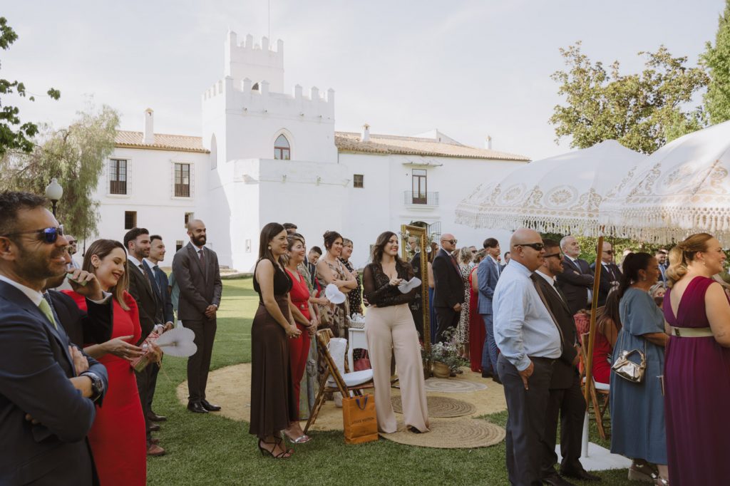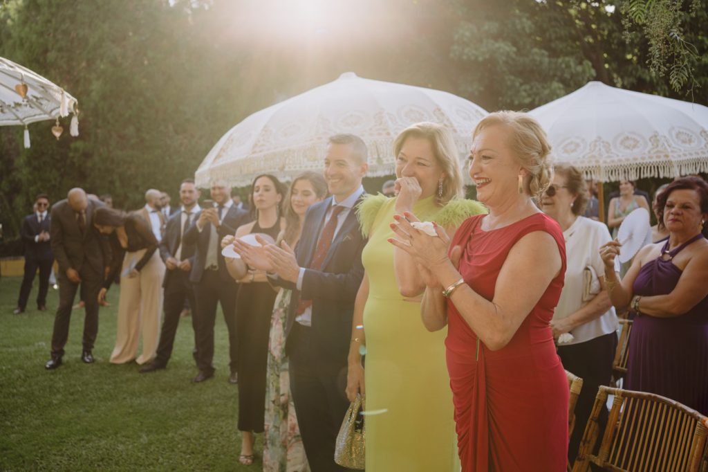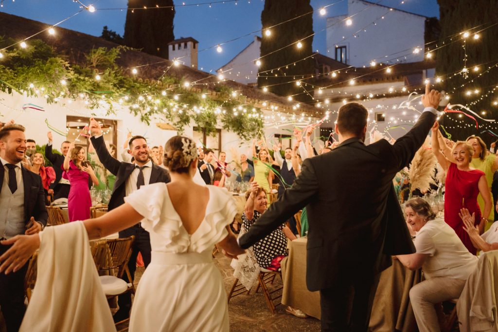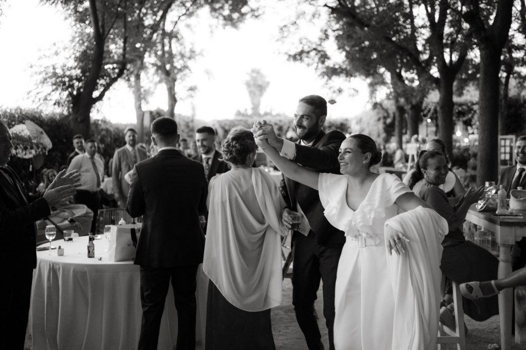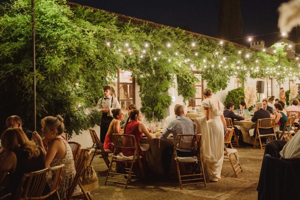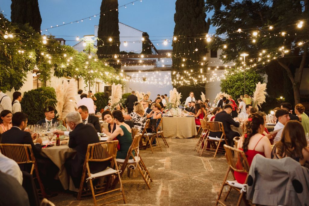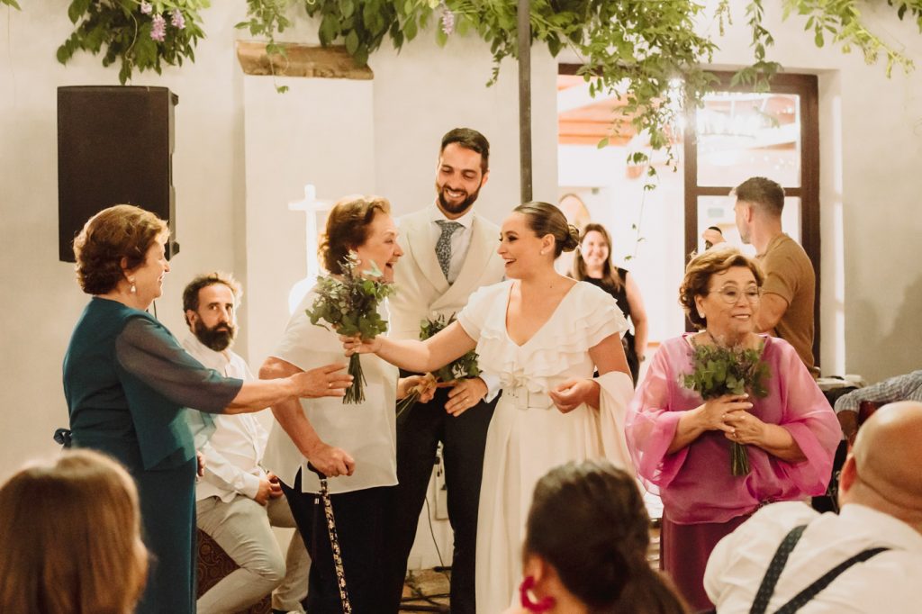Dicen que de una boda, sale otra boda, y desde luego con este grupito se cumple ese dicho. Triana me contactó a raíz de ver las fotos de su prima uno o dos años antes, pero a través de Triana, también salieron las bodas de un par de amigas más de su grupo, y de ellas de miembros de su familia… En fin, una muy buena cadena de recomendación a la antigua usanza sin duda, y sinceramente no puedo sentirme más agradecida de que su círculo haya confiando en Andromeda Stories y sigan haciéndolo hasta día de hoy. Además que son a cada cual más encantadores y buena gente. Parejas con las que da gusto tratar, agradecidas y que te lo ponen muy fácil. Triana y Fran son una de esas parejas y tuvimos super buen feeling desde el principio. A su preboda se trajeron a sus dos pequeños y disfrutamos muchísimo haciendo fotos en familia, y en la boda ya todo iba rodado y me hicieron sentir como en casa. Además eligieron un sitio maravilloso para casarse, el precioso Cortijo Torre de la Reina, donde se casaron bajo un árbol, frente a sus seres queridos, y la zona de la cena la decoraron super bonita con un techo de bombillas amarillas que creaban un entorno de ensueño para una noche de verano para el recuerdo.