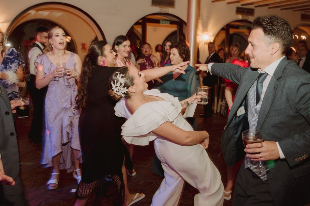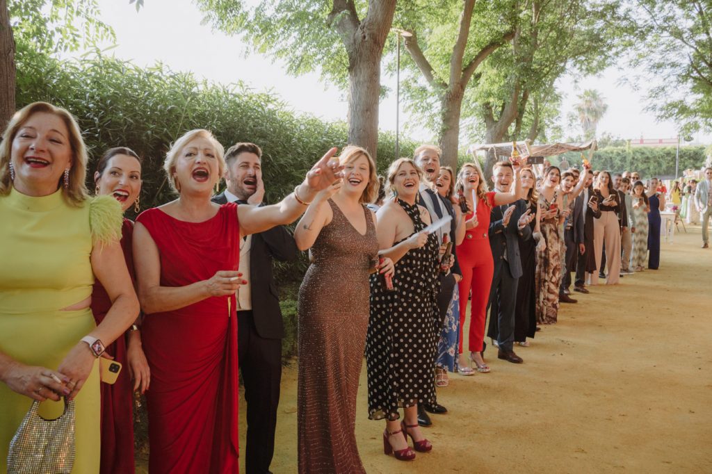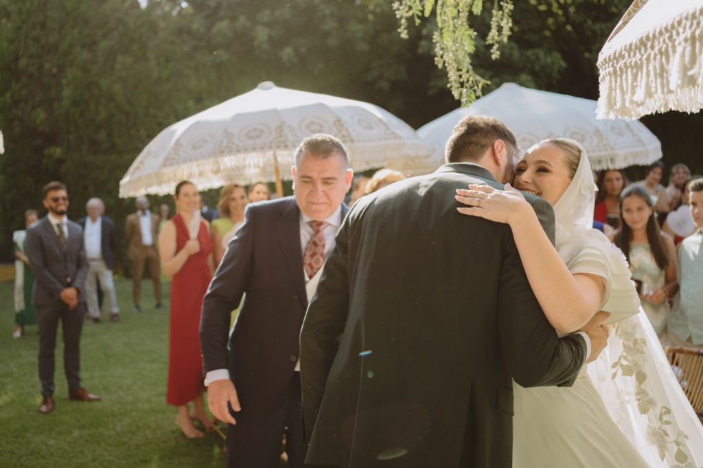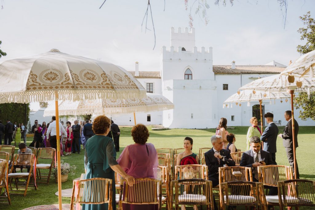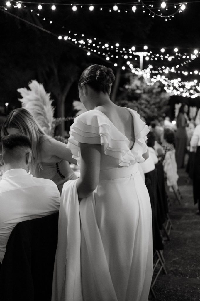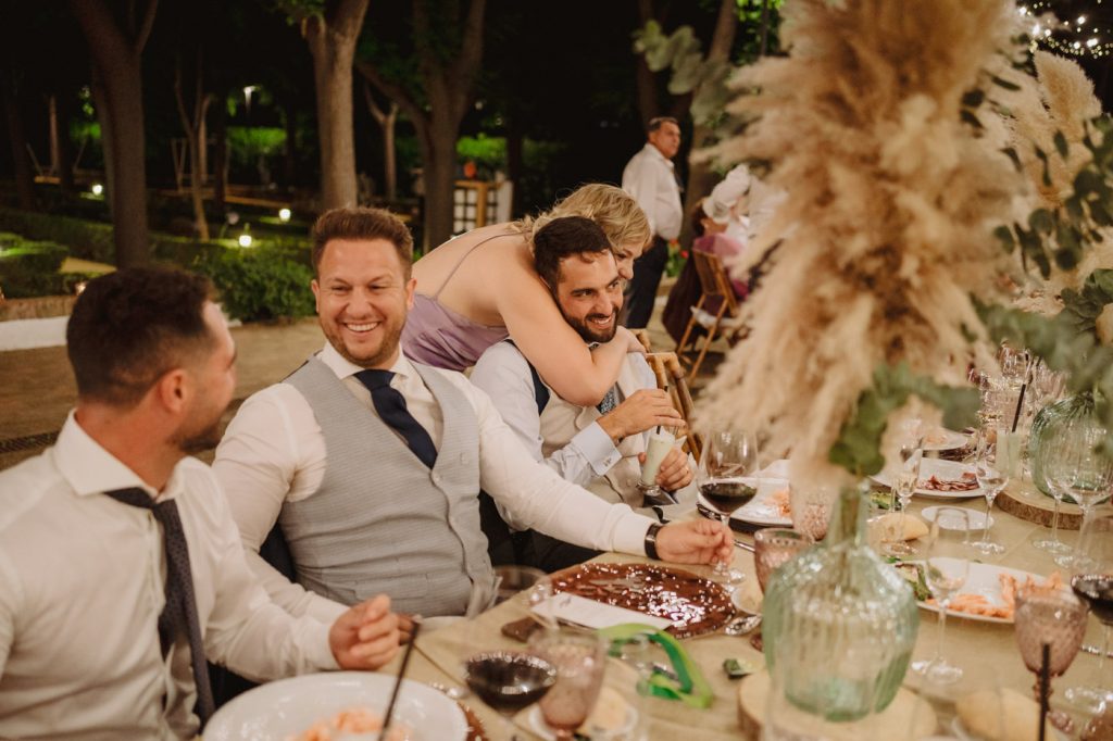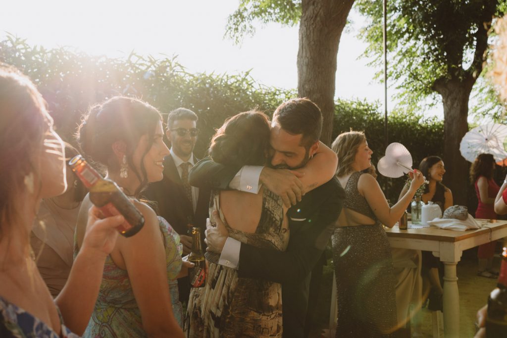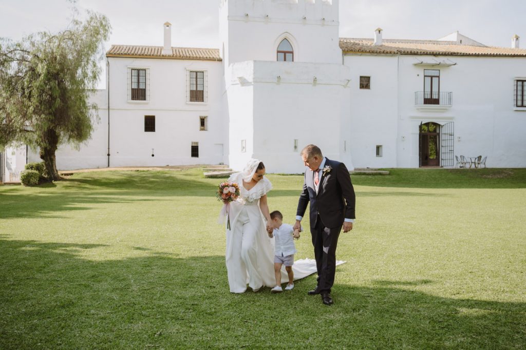 Dicen que de una boda, sale otra boda, y desde luego con este grupito se cumple ese dicho. Triana me contactó a raíz de ver las fotos de su prima uno o dos años antes, pero a través de Triana, también salieron las bodas de un par de amigas más de su grupo, y de ellas de miembros de su familia… En fin, una muy buena cadena de recomendación a la antigua usanza sin duda, y sinceramente no puedo sentirme más agradecida de que su círculo haya confiando en Andromeda Stories y sigan haciéndolo hasta día de hoy. Además que son a cada cual más encantadores y buena gente. Parejas con las que da gusto tratar, agradecidas y que te lo ponen muy fácil. Triana y Fran son una de esas parejas y tuvimos super buen feeling desde el principio. A su preboda se trajeron a sus dos pequeños y disfrutamos muchísimo haciendo fotos en familia, y en la boda ya todo iba rodado y me hicieron sentir como en casa. Además eligieron un sitio maravilloso para casarse, el precioso Cortijo Torre de la Reina, donde se casaron bajo un árbol, frente a sus seres queridos, y la zona de la cena la decoraron super bonita con un techo de bombillas amarillas que creaban un entorno de ensueño para una noche de verano para el recuerdo.