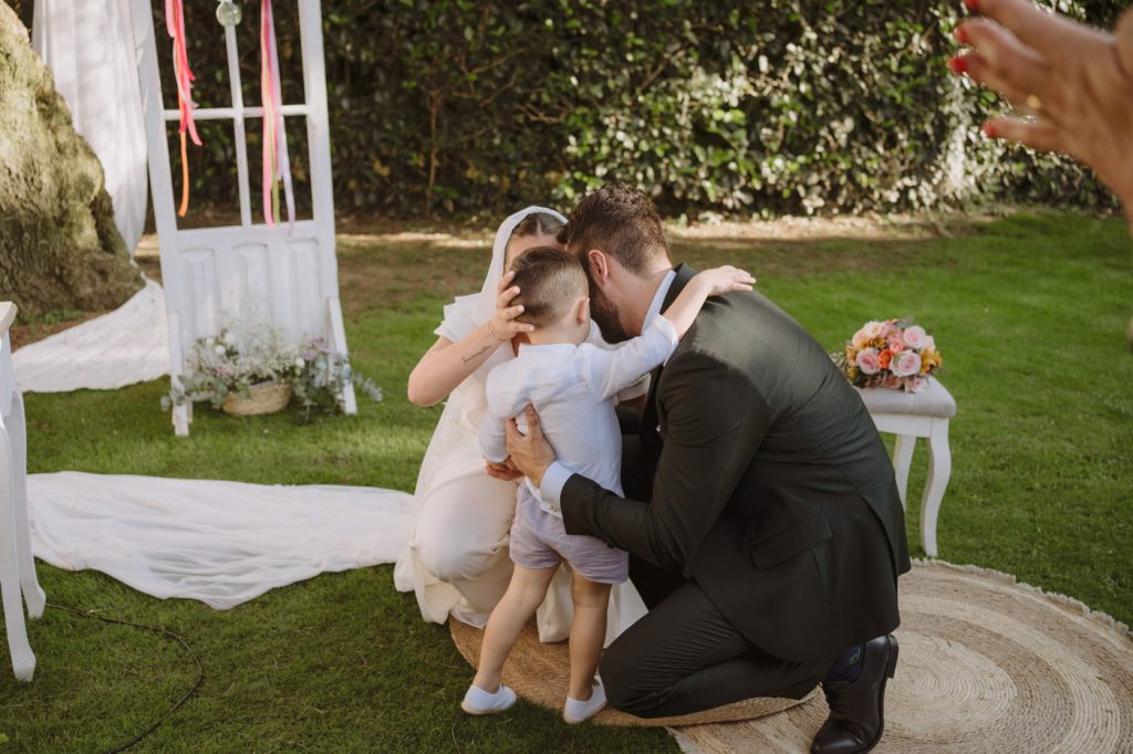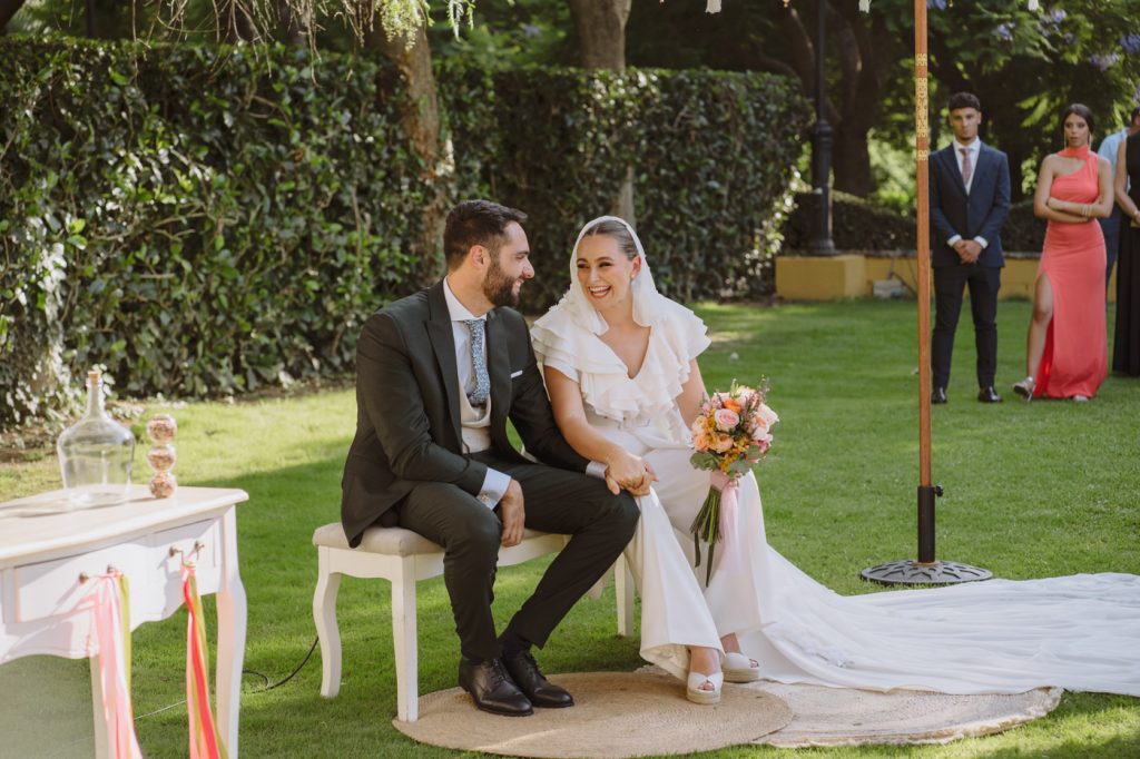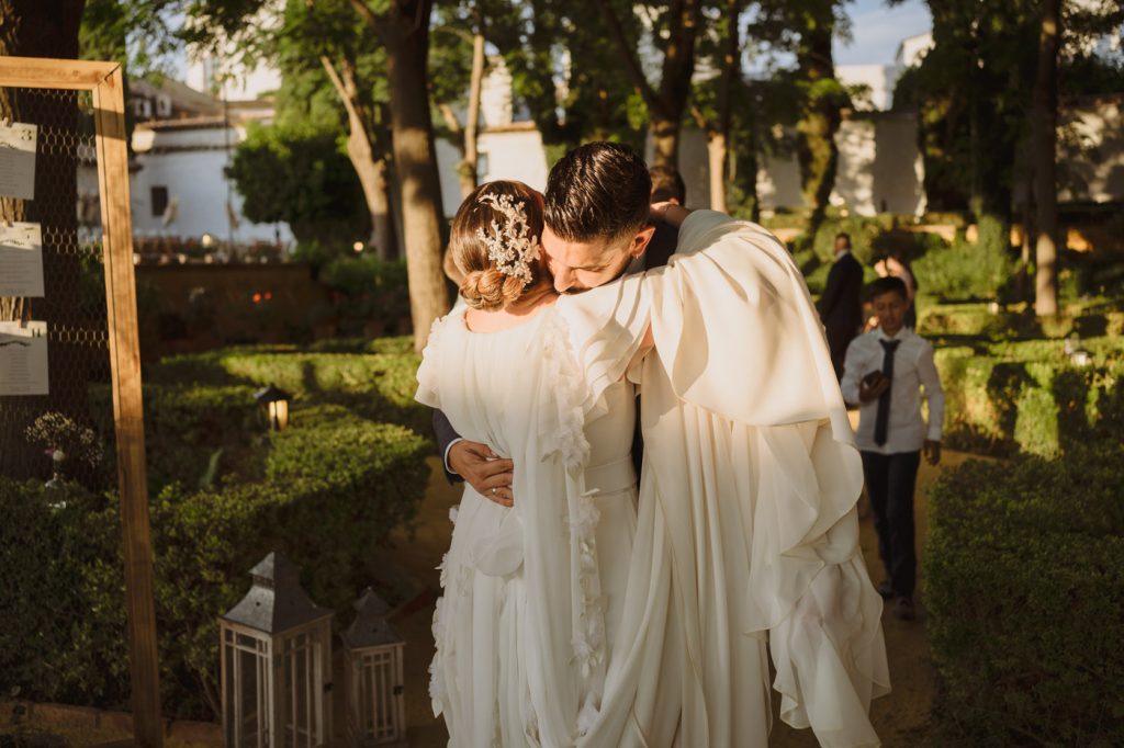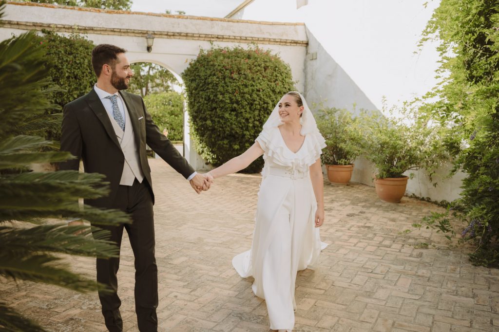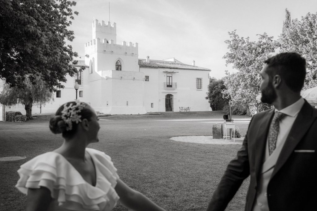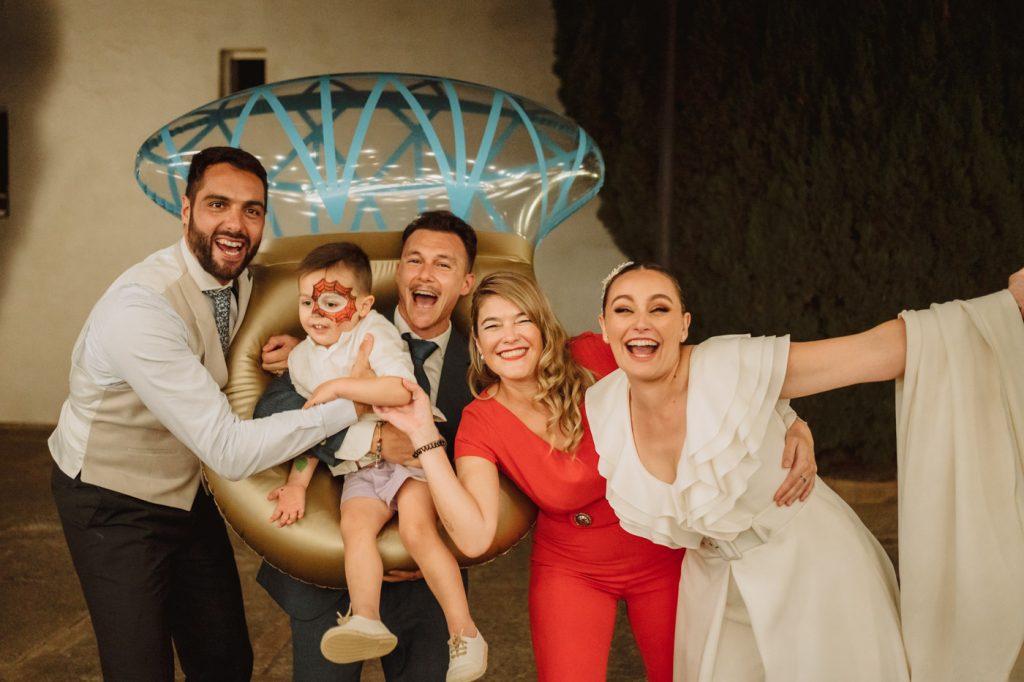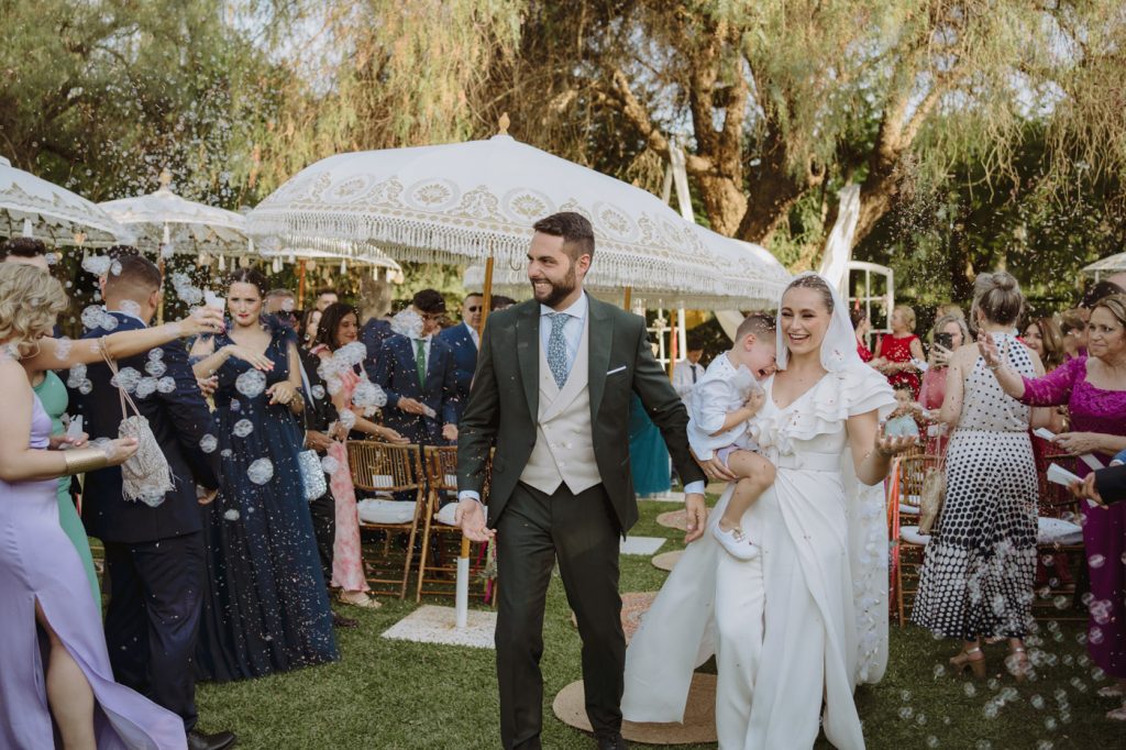 Dicen que de una boda, sale otra boda, y desde luego con este grupito se cumple ese dicho. Triana me contactó a raíz de ver las fotos de su prima uno o dos años antes, pero a través de Triana, también salieron las bodas de un par de amigas más de su grupo, y de ellas de miembros de su familia… En fin, una muy buena cadena de recomendación a la antigua usanza sin duda, y sinceramente no puedo sentirme más agradecida de que su círculo haya confiando en Andromeda Stories y sigan haciéndolo hasta día de hoy. Además que son a cada cual más encantadores y buena gente. Parejas con las que da gusto tratar, agradecidas y que te lo ponen muy fácil. Triana y Fran son una de esas parejas y tuvimos super buen feeling desde el principio. A su preboda se trajeron a sus dos pequeños y disfrutamos muchísimo haciendo fotos en familia, y en la boda ya todo iba rodado y me hicieron sentir como en casa. Además eligieron un sitio maravilloso para casarse, el precioso Cortijo Torre de la Reina, donde se casaron bajo un árbol, frente a sus seres queridos, y la zona de la cena la decoraron super bonita con un techo de bombillas amarillas que creaban un entorno de ensueño para una noche de verano para el recuerdo.