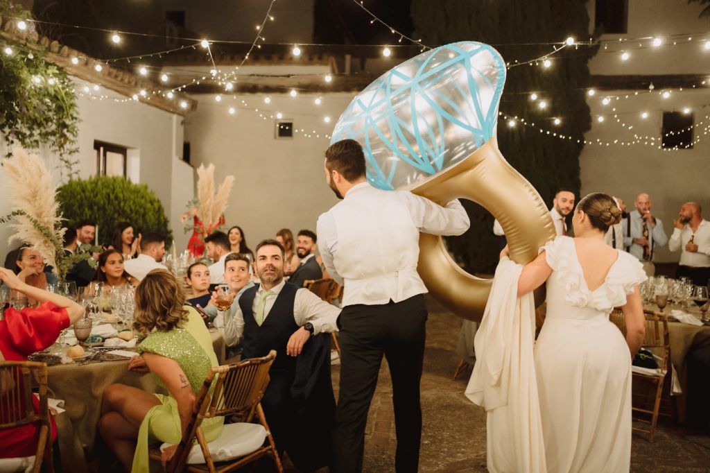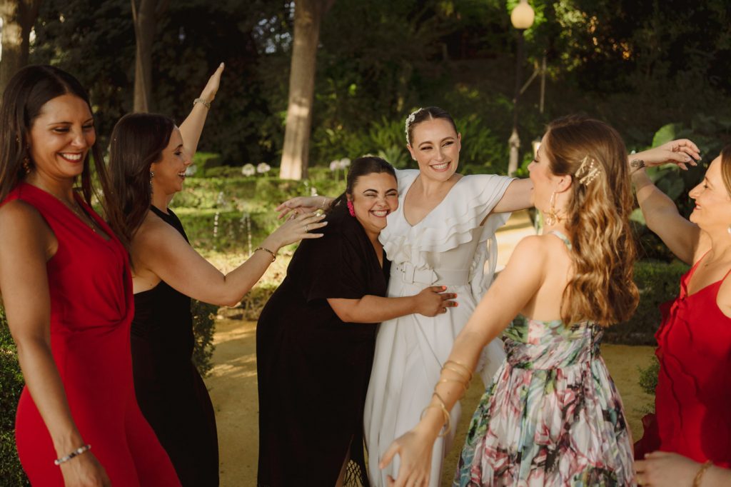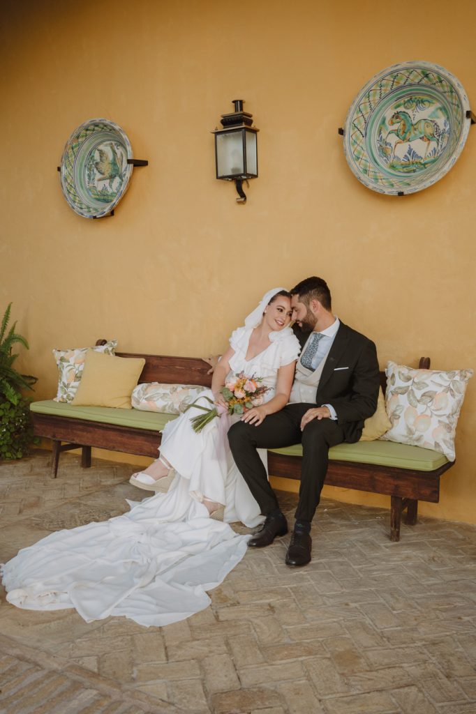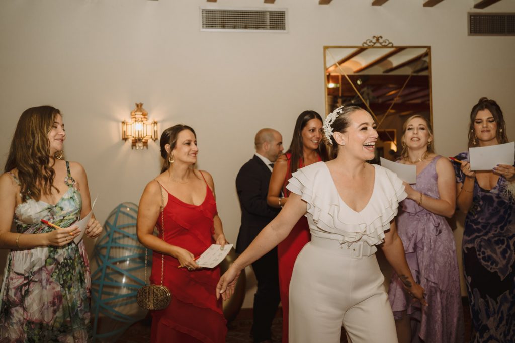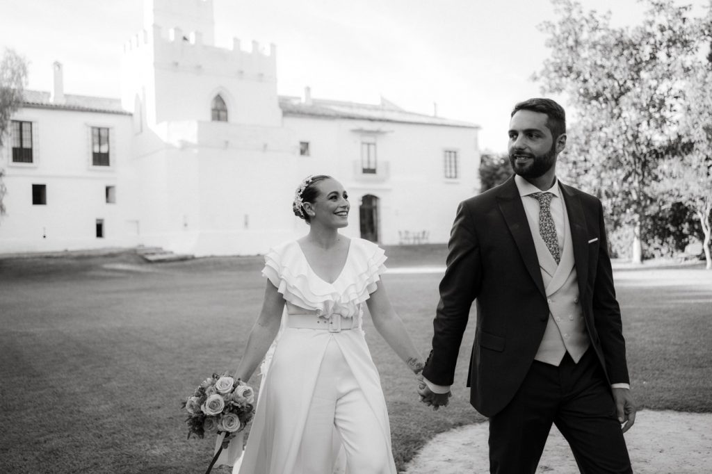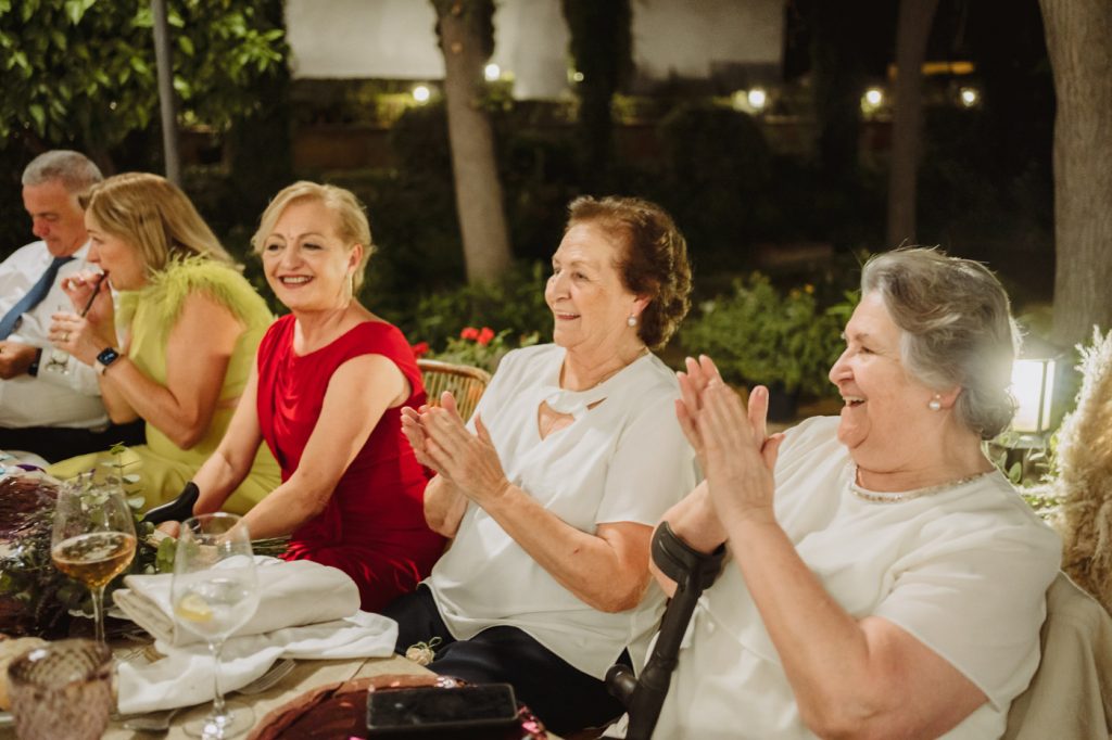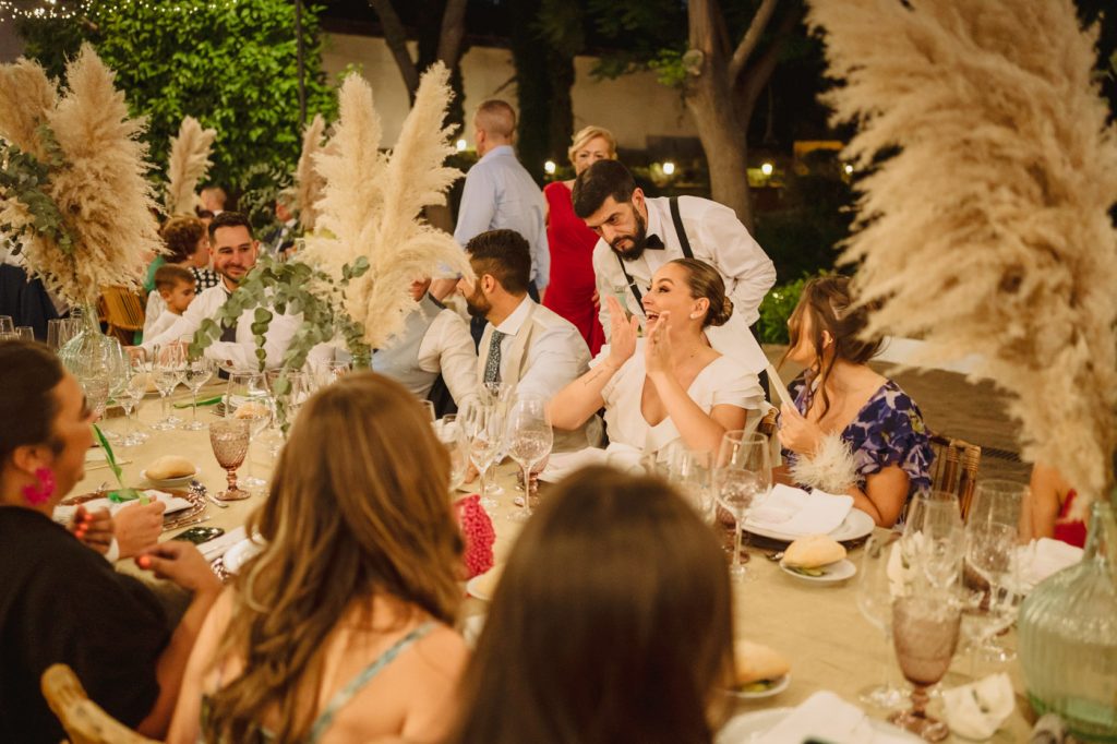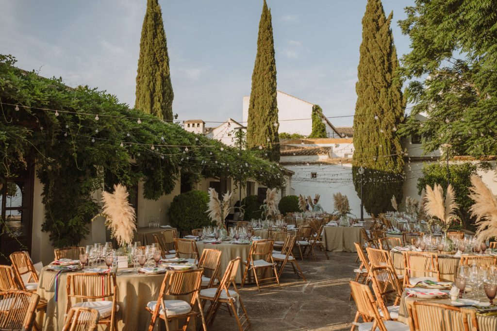 Dicen que de una boda, sale otra boda, y desde luego con este grupito se cumple ese dicho. Triana me contactó a raíz de ver las fotos de su prima uno o dos años antes, pero a través de Triana, también salieron las bodas de un par de amigas más de su grupo, y de ellas de miembros de su familia… En fin, una muy buena cadena de recomendación a la antigua usanza sin duda, y sinceramente no puedo sentirme más agradecida de que su círculo haya confiando en Andromeda Stories y sigan haciéndolo hasta día de hoy. Además que son a cada cual más encantadores y buena gente. Parejas con las que da gusto tratar, agradecidas y que te lo ponen muy fácil. Triana y Fran son una de esas parejas y tuvimos super buen feeling desde el principio. A su preboda se trajeron a sus dos pequeños y disfrutamos muchísimo haciendo fotos en familia, y en la boda ya todo iba rodado y me hicieron sentir como en casa. Además eligieron un sitio maravilloso para casarse, el precioso Cortijo Torre de la Reina, donde se casaron bajo un árbol, frente a sus seres queridos, y la zona de la cena la decoraron super bonita con un techo de bombillas amarillas que creaban un entorno de ensueño para una noche de verano para el recuerdo.