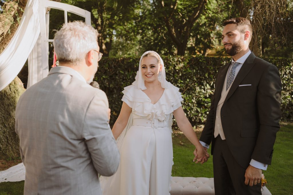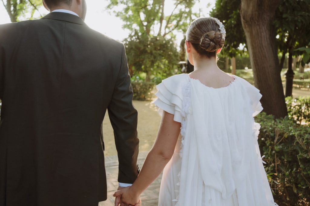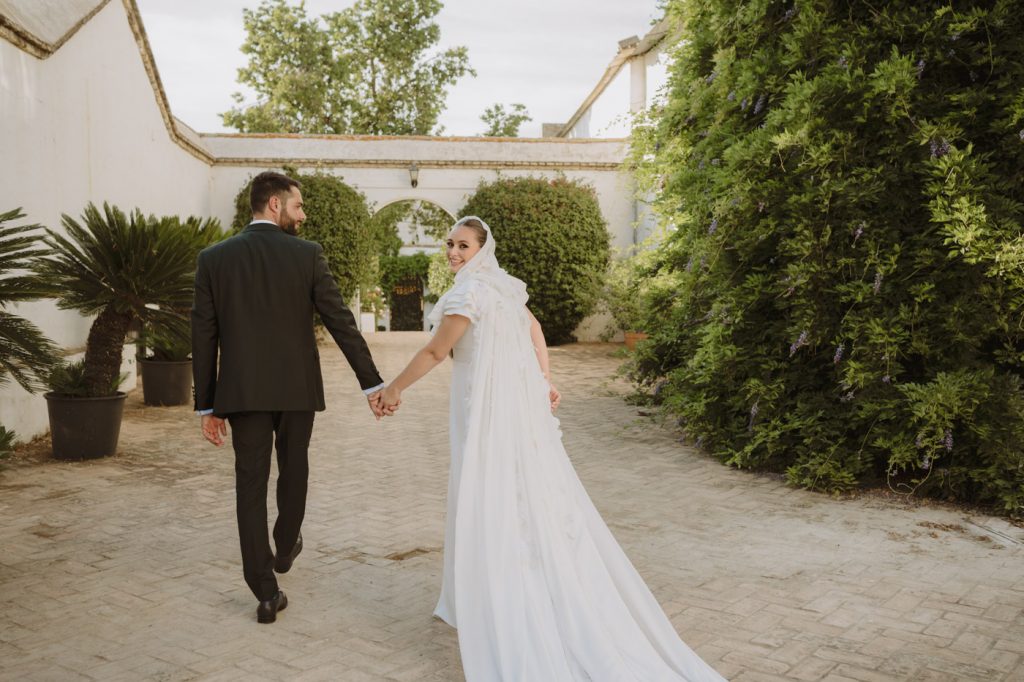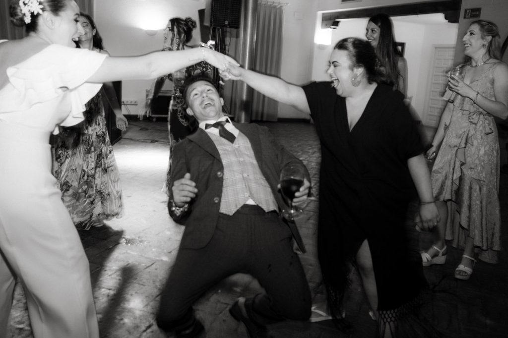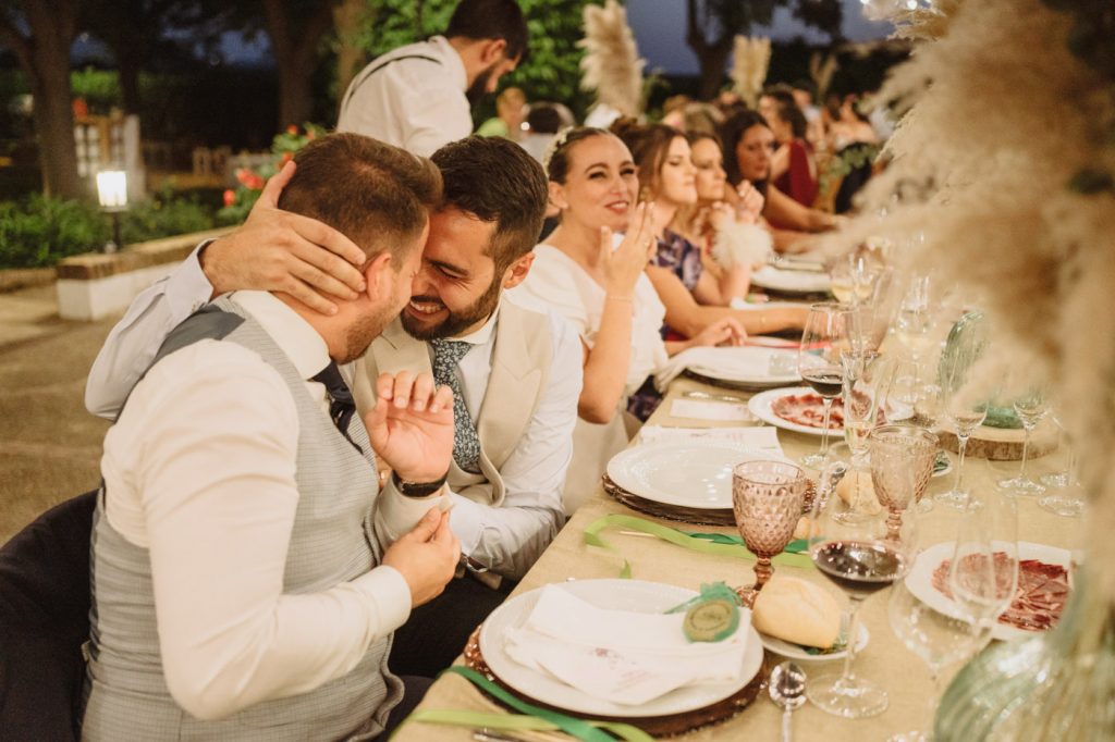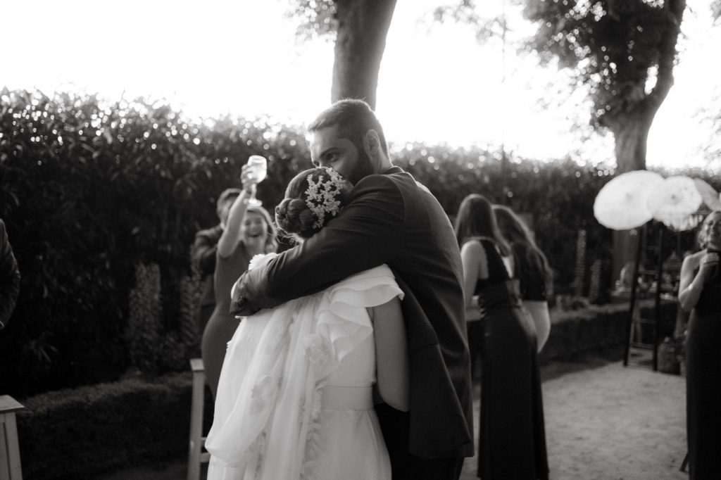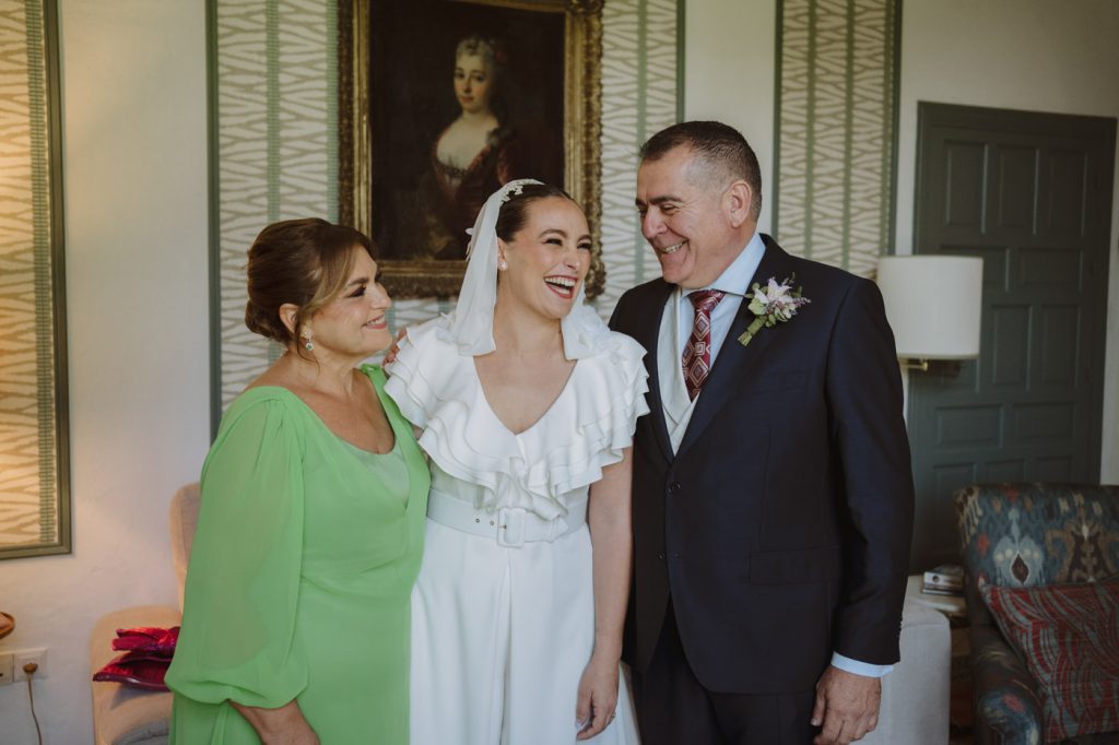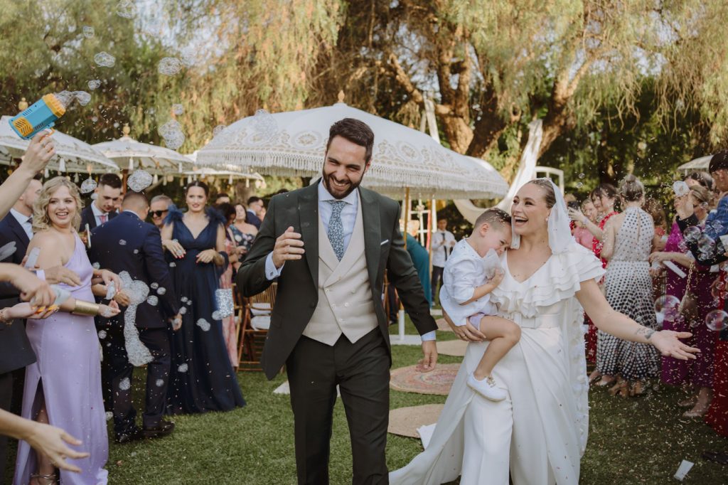 Dicen que de una boda, sale otra boda, y desde luego con este grupito se cumple ese dicho. Triana me contactó a raíz de ver las fotos de su prima uno o dos años antes, pero a través de Triana, también salieron las bodas de un par de amigas más de su grupo, y de ellas de miembros de su familia… En fin, una muy buena cadena de recomendación a la antigua usanza sin duda, y sinceramente no puedo sentirme más agradecida de que su círculo haya confiando en Andromeda Stories y sigan haciéndolo hasta día de hoy. Además que son a cada cual más encantadores y buena gente. Parejas con las que da gusto tratar, agradecidas y que te lo ponen muy fácil. Triana y Fran son una de esas parejas y tuvimos super buen feeling desde el principio. A su preboda se trajeron a sus dos pequeños y disfrutamos muchísimo haciendo fotos en familia, y en la boda ya todo iba rodado y me hicieron sentir como en casa. Además eligieron un sitio maravilloso para casarse, el precioso Cortijo Torre de la Reina, donde se casaron bajo un árbol, frente a sus seres queridos, y la zona de la cena la decoraron super bonita con un techo de bombillas amarillas que creaban un entorno de ensueño para una noche de verano para el recuerdo.
