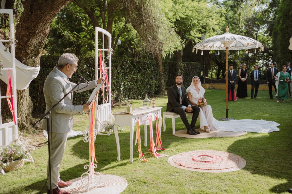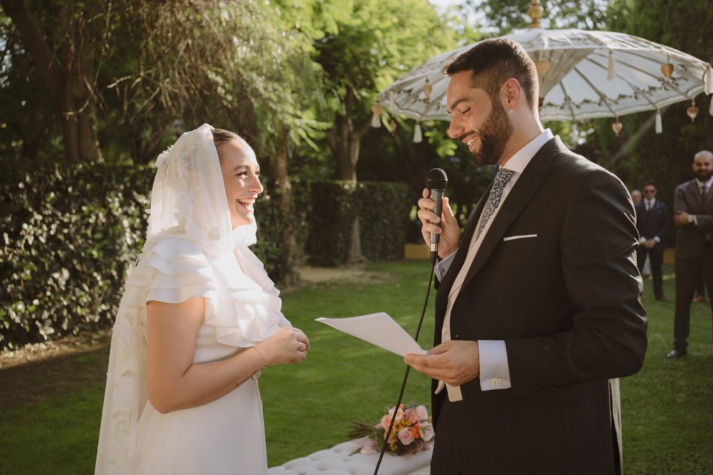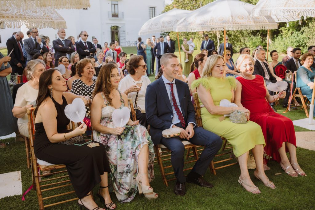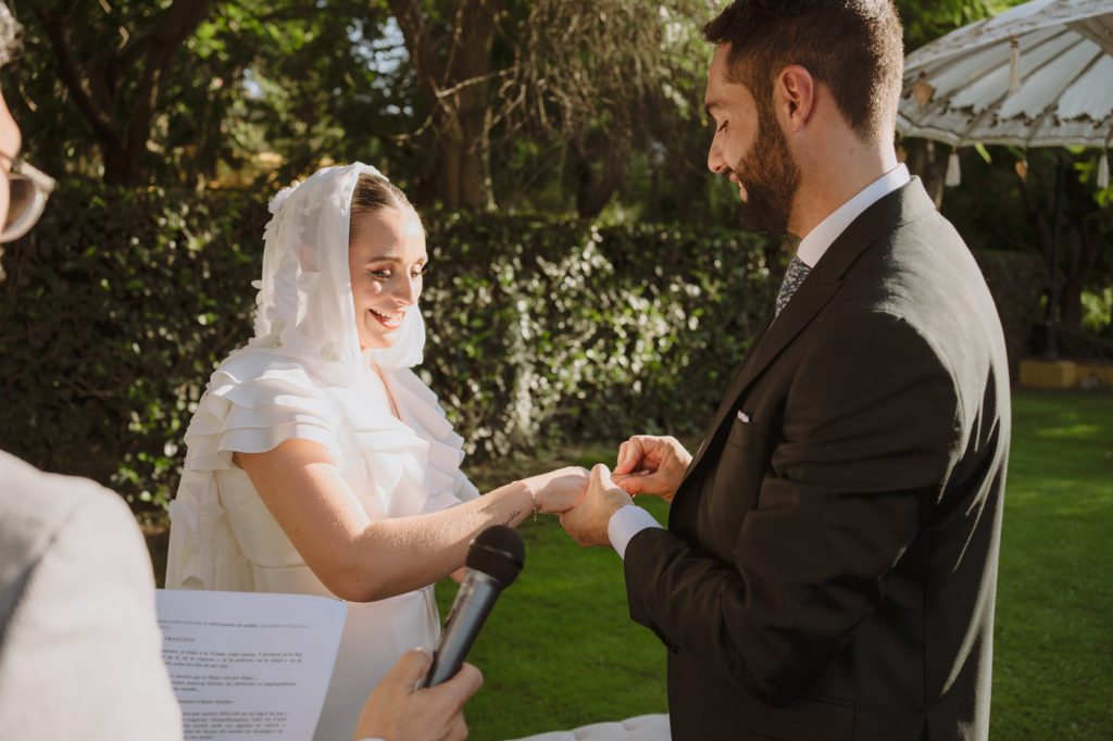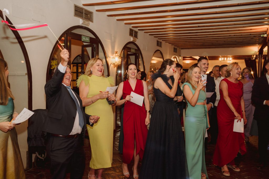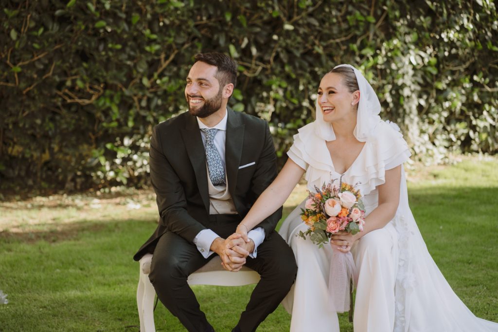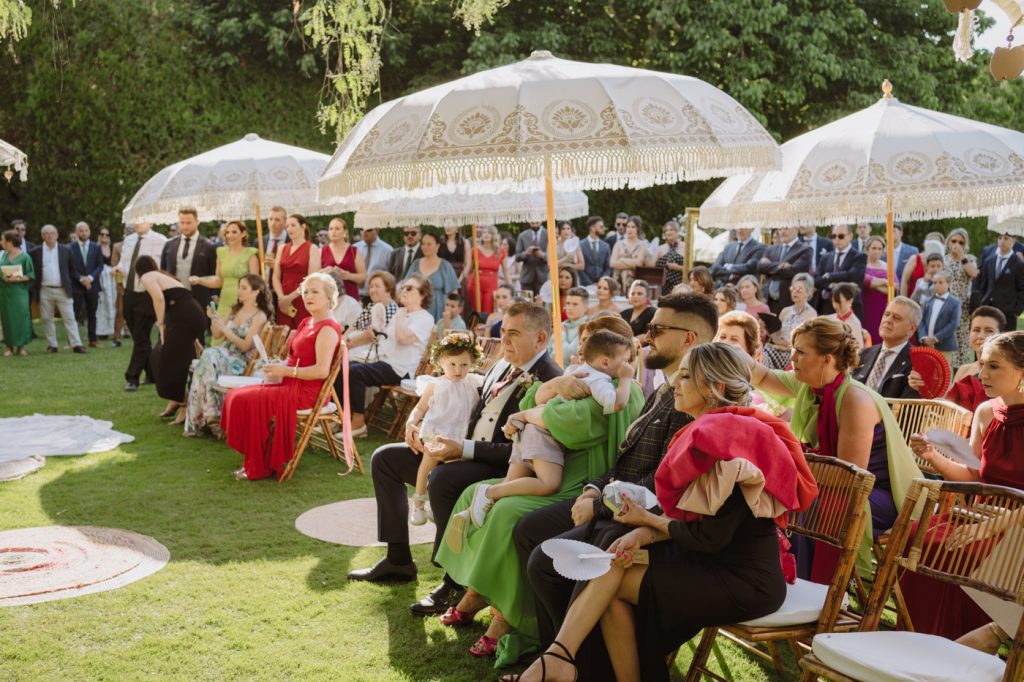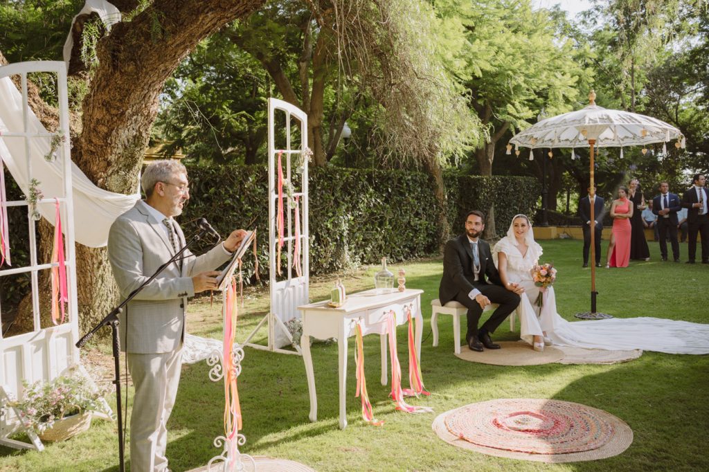 Dicen que de una boda, sale otra boda, y desde luego con este grupito se cumple ese dicho. Triana me contactó a raíz de ver las fotos de su prima uno o dos años antes, pero a través de Triana, también salieron las bodas de un par de amigas más de su grupo, y de ellas de miembros de su familia… En fin, una muy buena cadena de recomendación a la antigua usanza sin duda, y sinceramente no puedo sentirme más agradecida de que su círculo haya confiando en Andromeda Stories y sigan haciéndolo hasta día de hoy. Además que son a cada cual más encantadores y buena gente. Parejas con las que da gusto tratar, agradecidas y que te lo ponen muy fácil. Triana y Fran son una de esas parejas y tuvimos super buen feeling desde el principio. A su preboda se trajeron a sus dos pequeños y disfrutamos muchísimo haciendo fotos en familia, y en la boda ya todo iba rodado y me hicieron sentir como en casa. Además eligieron un sitio maravilloso para casarse, el precioso Cortijo Torre de la Reina, donde se casaron bajo un árbol, frente a sus seres queridos, y la zona de la cena la decoraron super bonita con un techo de bombillas amarillas que creaban un entorno de ensueño para una noche de verano para el recuerdo.