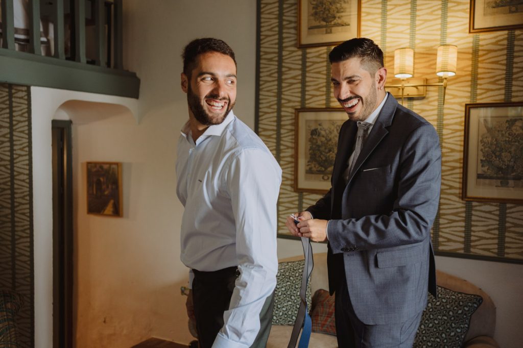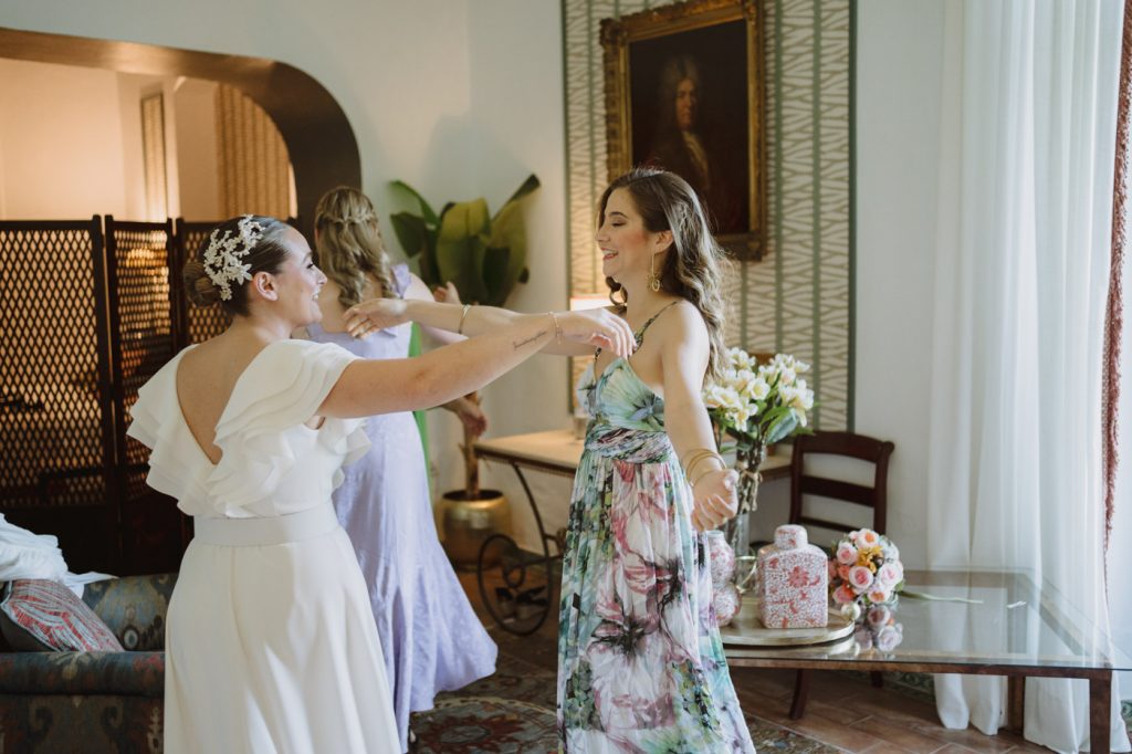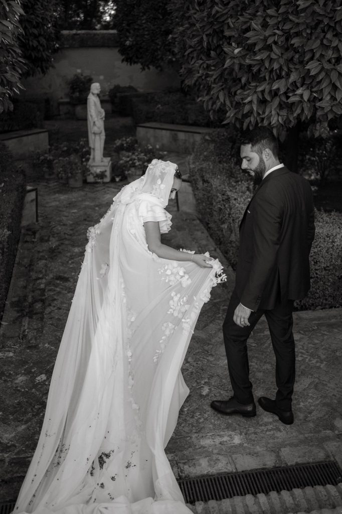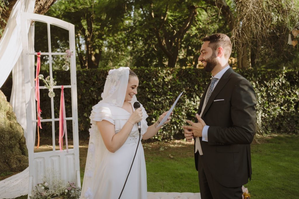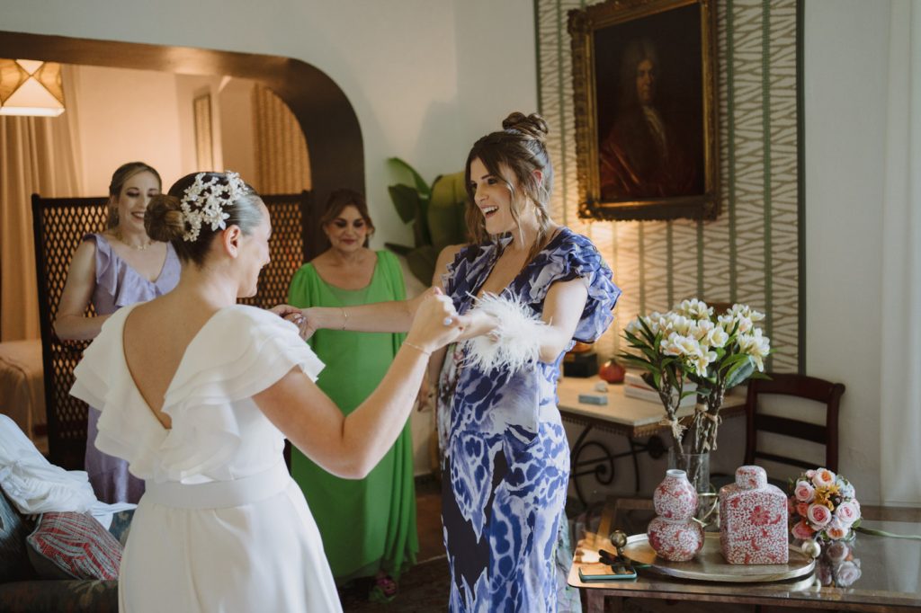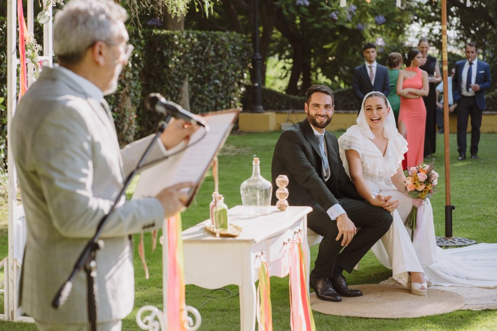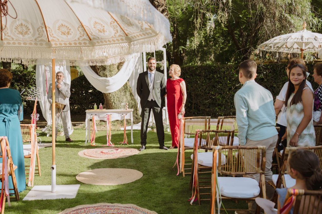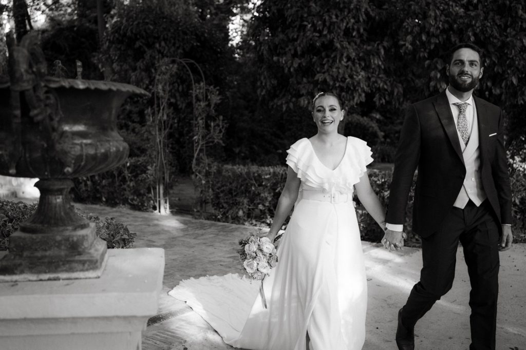 Dicen que de una boda, sale otra boda, y desde luego con este grupito se cumple ese dicho. Triana me contactó a raíz de ver las fotos de su prima uno o dos años antes, pero a través de Triana, también salieron las bodas de un par de amigas más de su grupo, y de ellas de miembros de su familia… En fin, una muy buena cadena de recomendación a la antigua usanza sin duda, y sinceramente no puedo sentirme más agradecida de que su círculo haya confiando en Andromeda Stories y sigan haciéndolo hasta día de hoy. Además que son a cada cual más encantadores y buena gente. Parejas con las que da gusto tratar, agradecidas y que te lo ponen muy fácil. Triana y Fran son una de esas parejas y tuvimos super buen feeling desde el principio. A su preboda se trajeron a sus dos pequeños y disfrutamos muchísimo haciendo fotos en familia, y en la boda ya todo iba rodado y me hicieron sentir como en casa. Además eligieron un sitio maravilloso para casarse, el precioso Cortijo Torre de la Reina, donde se casaron bajo un árbol, frente a sus seres queridos, y la zona de la cena la decoraron super bonita con un techo de bombillas amarillas que creaban un entorno de ensueño para una noche de verano para el recuerdo.