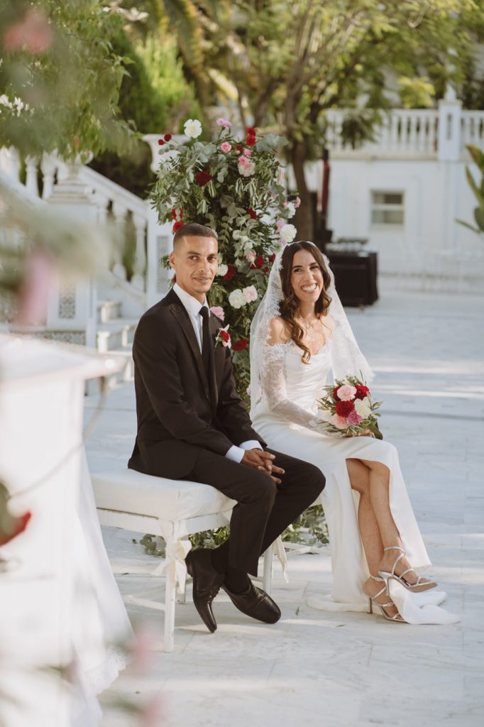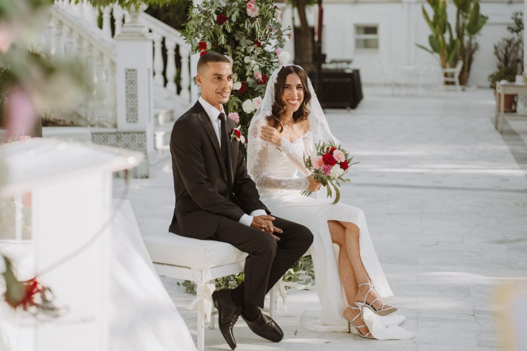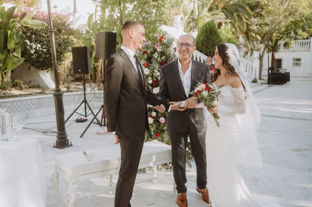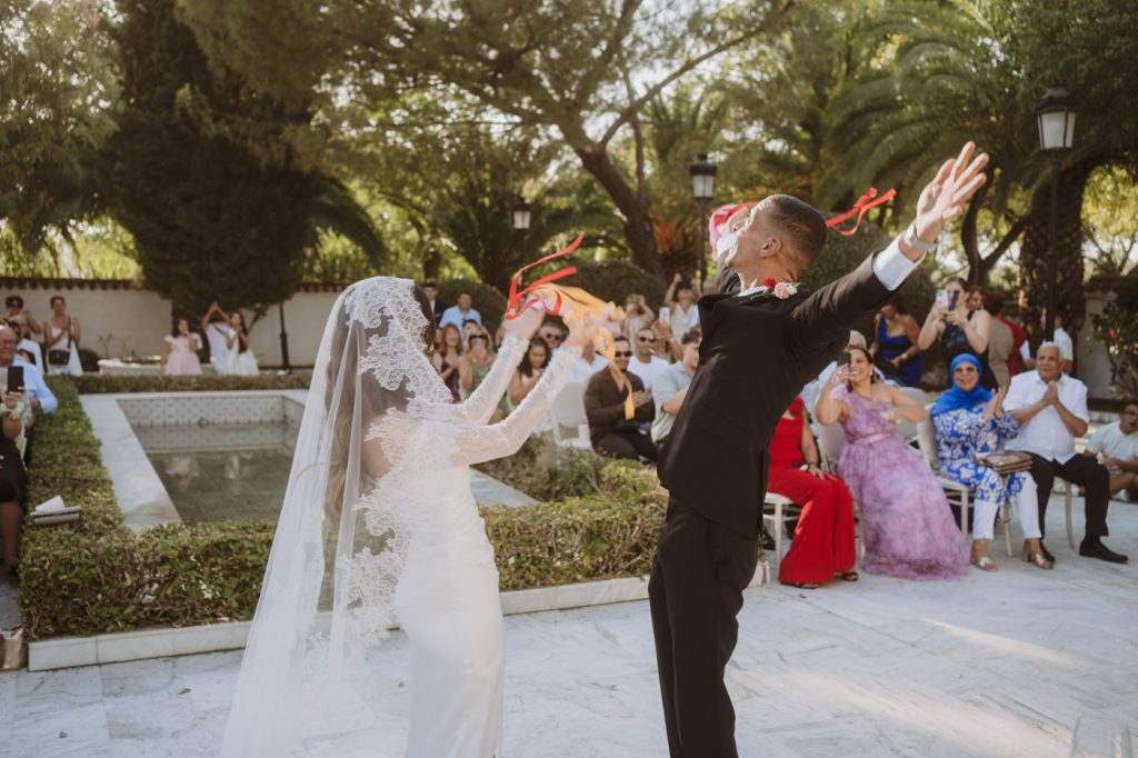 Ella con sangre francesa y española y él francesa y argelina. Una boda en la que se mezclaron 3 culturas, con invitados venidos de multitud de lugares, a darse encuentro en la capital de Andalucía y celebrar el amor de esta pareja tan bonita, en la fantástica Hacienda Azahares.