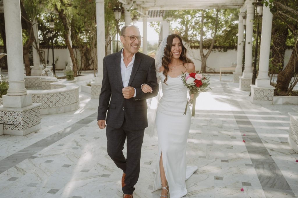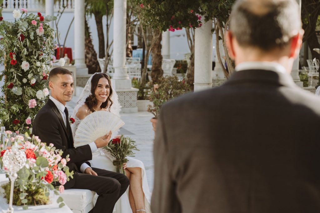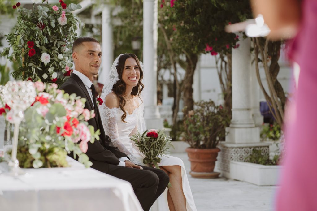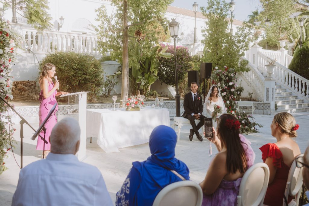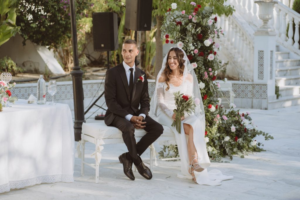 Ella con sangre francesa y española y él francesa y argelina. Una boda en la que se mezclaron 3 culturas, con invitados venidos de multitud de lugares, a darse encuentro en la capital de Andalucía y celebrar el amor de esta pareja tan bonita, en la fantástica Hacienda Azahares.